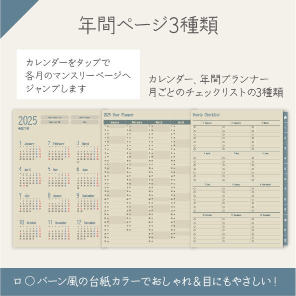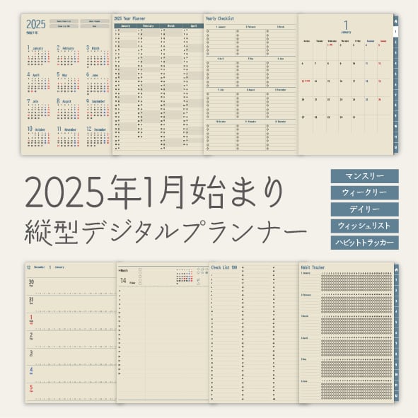 2025年縦型デジタルプランナー|紙の手帳風のスタンダードレイアウト&優しい台紙カラーで書きやすい♪