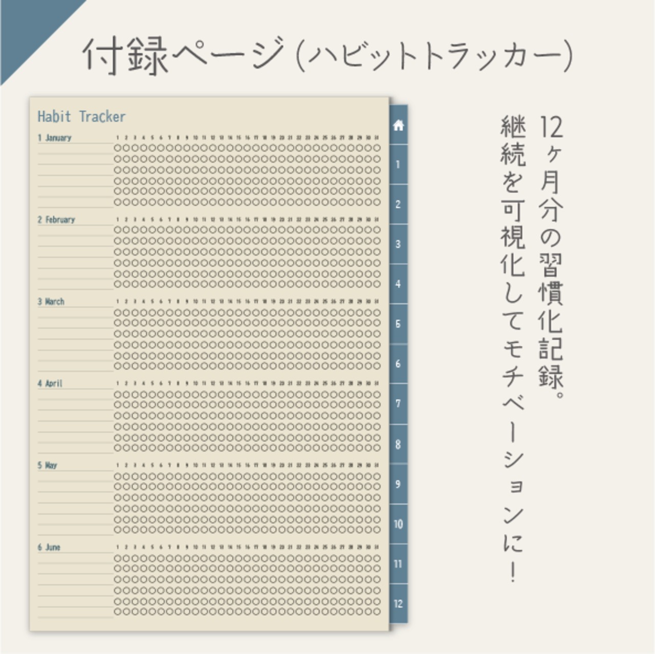 月ごとの習慣化をトラッキングできる便利機能